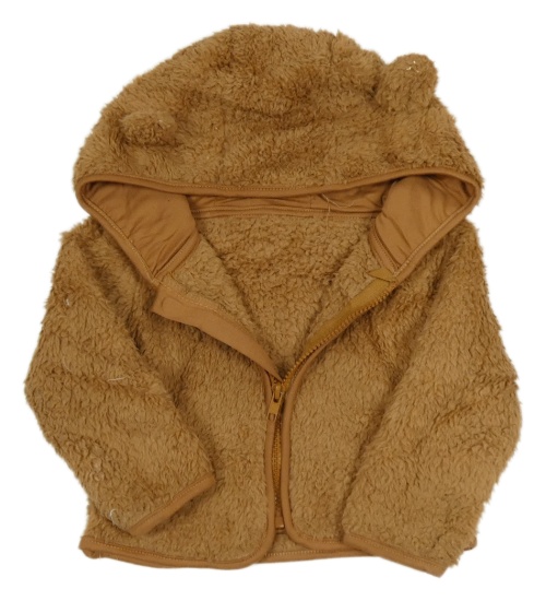 Hnedá chlpatá prepínaci mikina s kapucňou s uškami