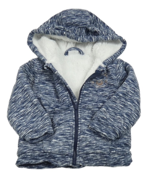 Tmavomodrá melírovaná zateplená fleecová prepínaci mikina s medvedíkom a kapucňou Orsolino