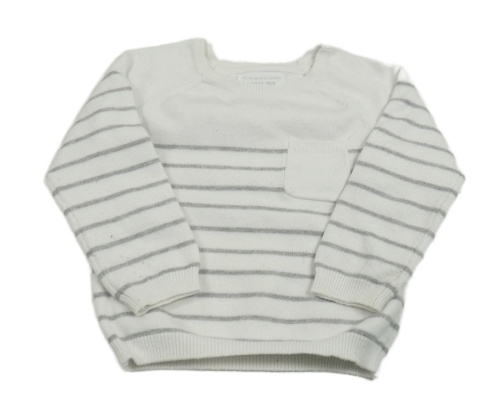 Bielo-sivý pruhovaný úpletový sveter s vreckom PRIMARK