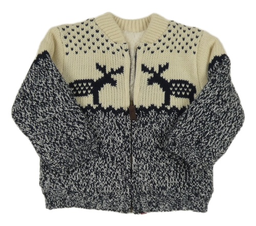 Smetanovo-bielo-tmavomodrý melírovaný prepínaci zateplený sveter so sobmi St. Bernard