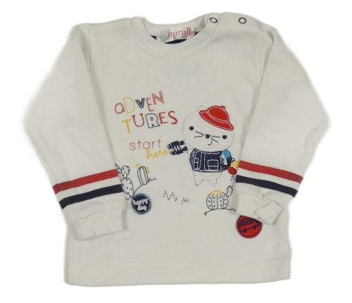 Biela mikina s mačičkou a kaktusmi a nápismi a pruhmi mirtillo