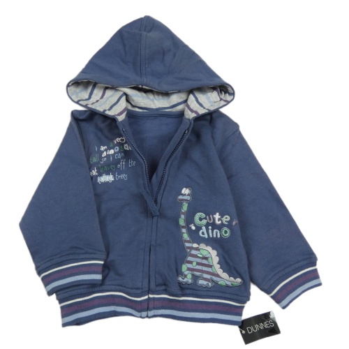 Nové - tmavomodrá prepínaci mikina s dinosaurom a nápismi a pruhmi a kapucňou St. Bernard