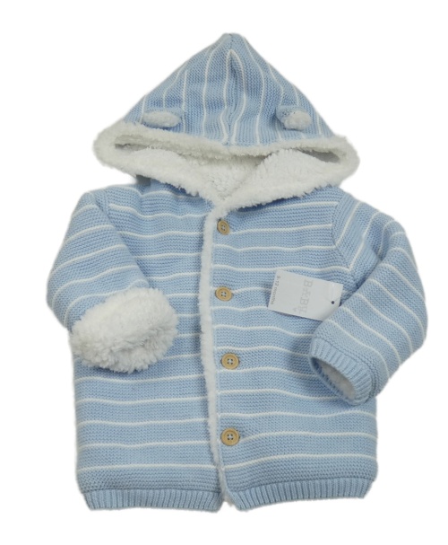 Nové - Světlemodro-biely pruhovaný prepínaci zateplený sveter s kapucňou Matalan