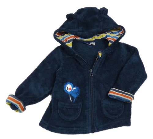 Tmavomodrá chlpatá prepínaci mikina s balónky a kapucňou Lupilu