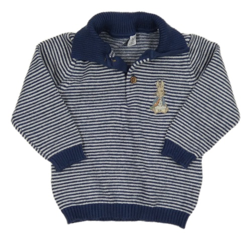 Tmavomodro-biely pruhovaný sveter s králíčkem - Peter Rabbit a golierikom M&S
