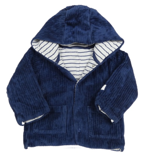 Tmavomodrá zamatová rebrovaná prepínaci podšitá mikina s kapucňou M&S