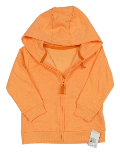 Nové - neónově oranžová melírovaná prepínaci mikina s dinosaurom a kapucňou St. Bernard