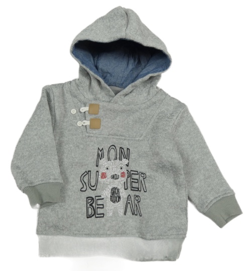 Sivá melírovaná pletená mikina s medvedíkom a kapucňou