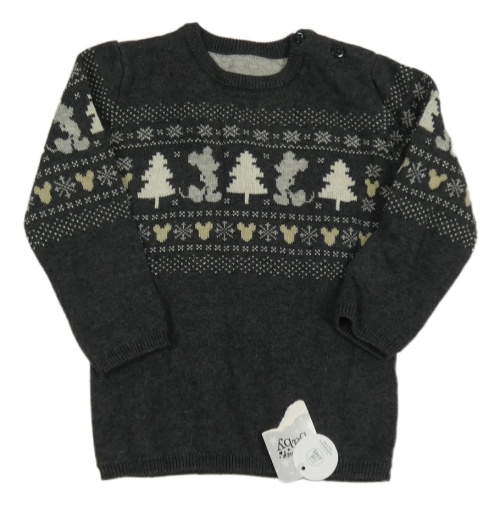 Nové - tmavosivý melírovaný sveter s Mickey a stromčekmi a vzorom George