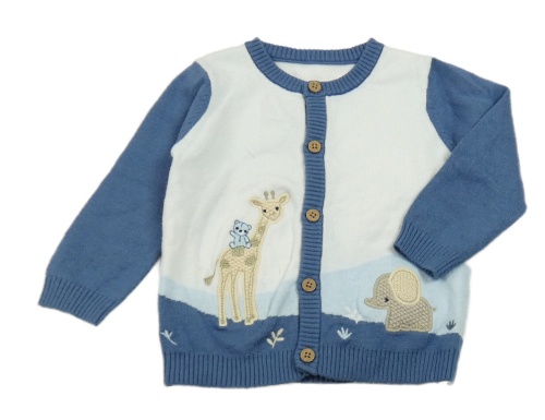 Bielo-tmavomodrý prepínaci sveter so žirafou Nutmeg