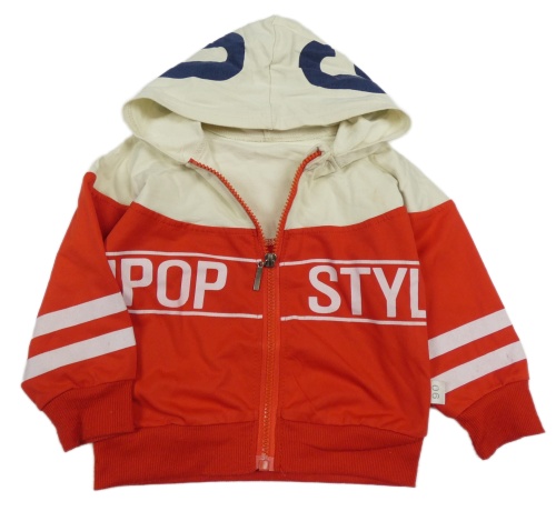 Smetanovo-červená ľahká prepínaci mikina s nápisom a kapucňou