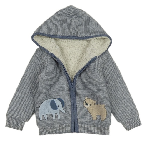 Modro-sivý pruhovaný zateplený prepínaci sveter so zvířaty a kapucňou Nutmeg