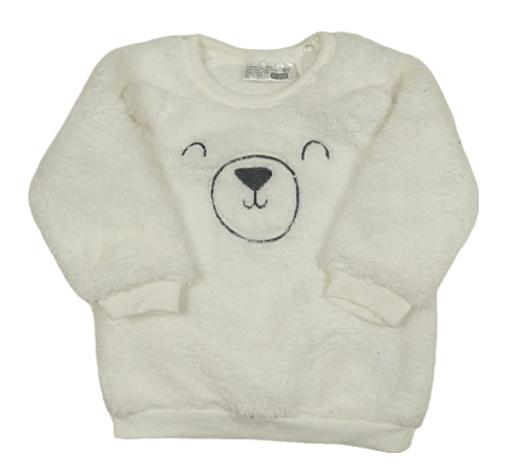 Biela huňatá mikina s medvěďom Ergee