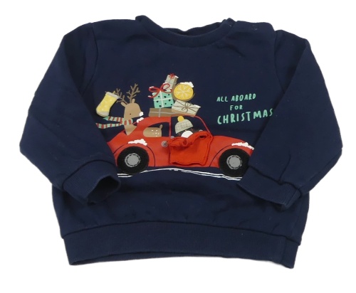 Tmavomodrá vianočná mikina s autom a darčekmi a zvieratkami a nápismi F&F