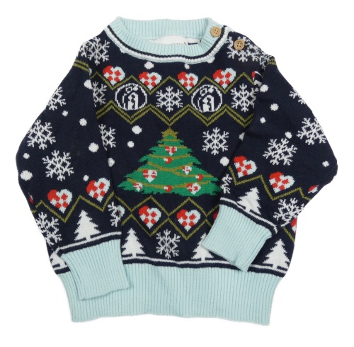 Nové - Tmavomodrý vzorovaný sveter so stromkem