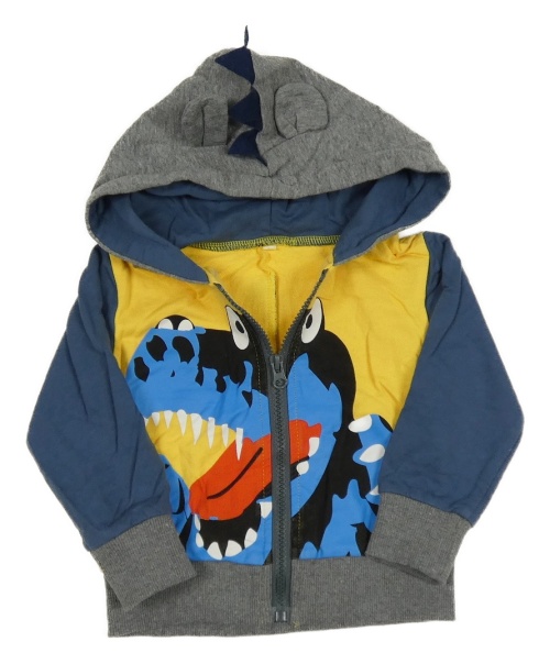 Žlto-petrolejová prepínaci mikina s dinosaurom a kapucňou