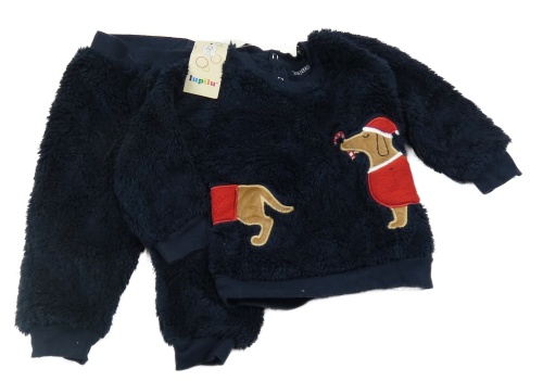 Nové - 2Set - Tmavmodrá chlpatá mikina s psíkom s vánočním motivem + nohavice lupilu