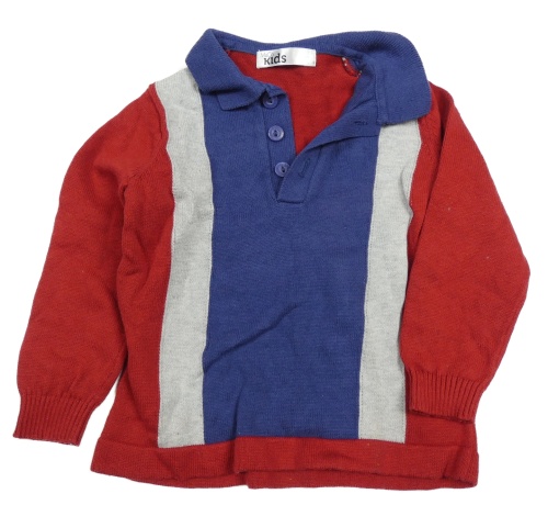 Červeno-sivo-tmavomodrý sveter s golierikom M&Co