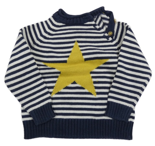 Tmavomodro-biely pruhovaný sveter s hviezdou John Lewis