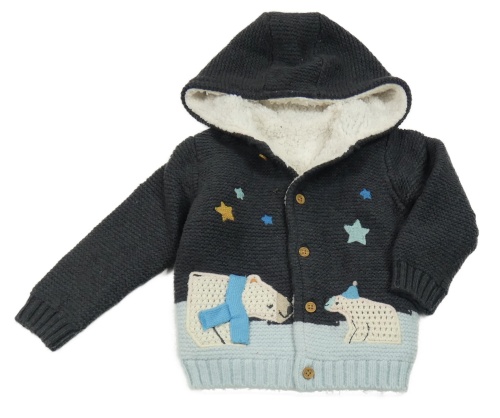Sivo-modrý zateplený prepínaci sveter s medveďmi a kapucňou M&S