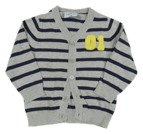 Sivo-tmavomodrý pruhovaný prepínaci sveter s číslom Topomini