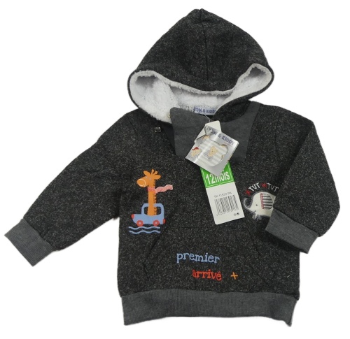 Nové - Tmavosivá melírovaná pletená mikina so zvířaty a kapucňou