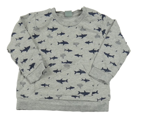 Sivá melírovaná mikina so žralokmi a ponorkami Kanz