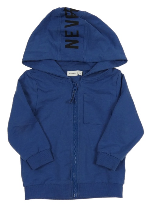 Tmavomodrá prepínaci mikina s nápisom a kapucňou Name it