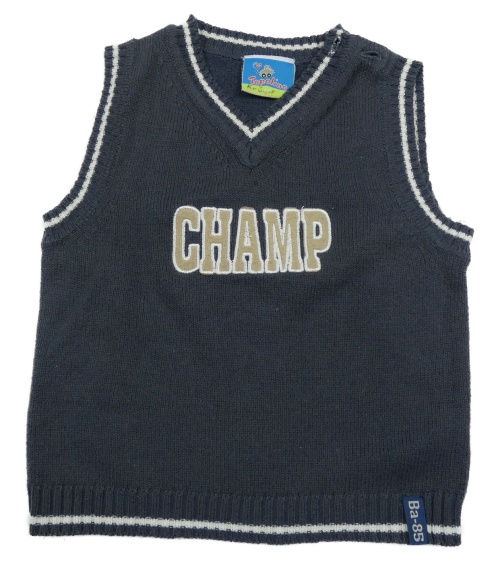 Tmavomodrošedá svetrová vesta s nápisom Topolino