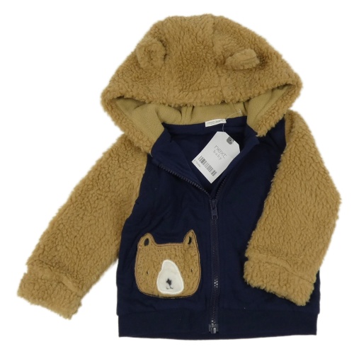 Nové - Tmavomodro-béžovo-huňatá prepínaci mikina s medvěďom a kapucňou Next