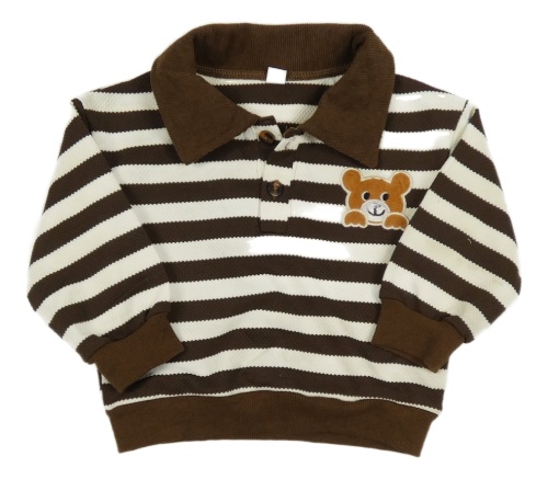 Hnedo-smotanová pruhovaná mikina s medvěďom a golierikom