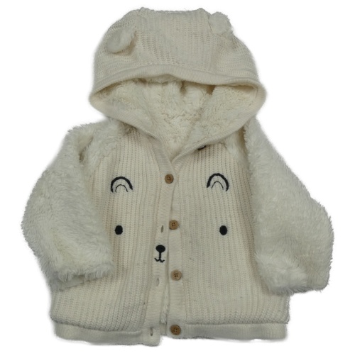 Smotanový svetrovo/chlupatý zateplený prepínaci sveter s medvěďom a kapucňou Nutmeg