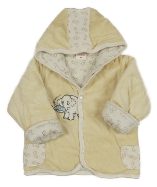 Béžová zamatová zateplená prepínaci mikina so slonom a kapucňou