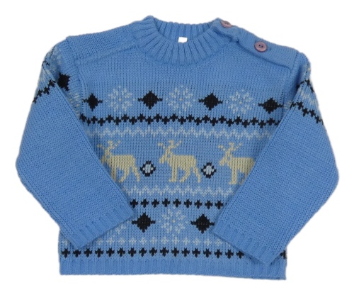 Svetlomodrý vzorovaný sveter s jeleňmi