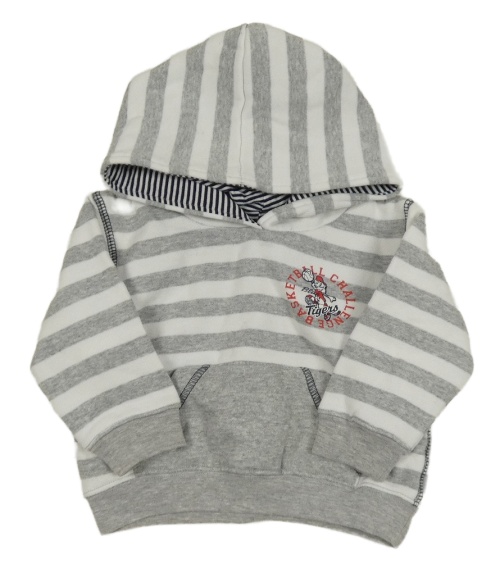Sivo-biela pruhovaná mikina s tigrom a nápismi a kapucňou Impidimpi