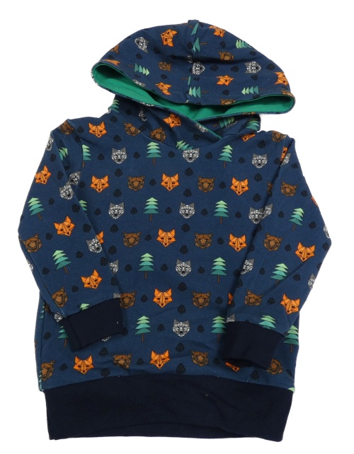 Tmavomodrá mikina s liškami, stromy a kapucňou