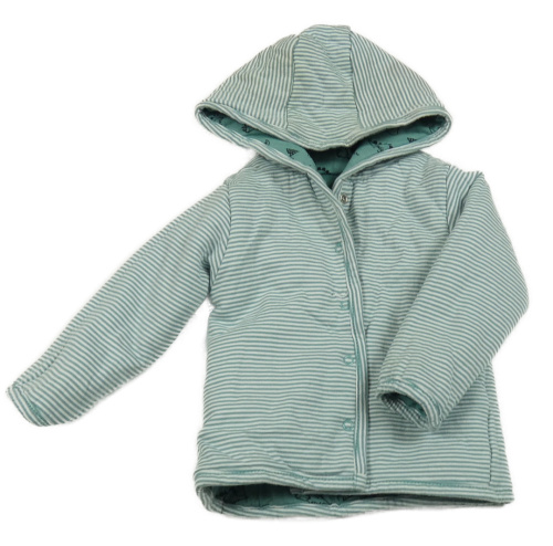 Zeleno-biela pruhovaná prepínaci zateplená obojstranná mikina s kapucňou