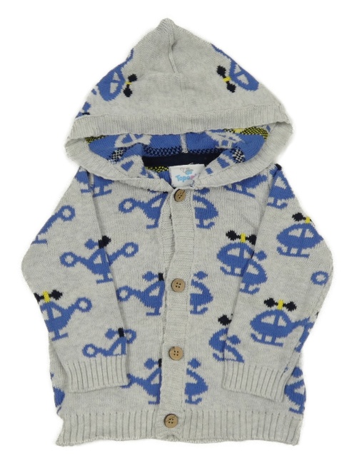 Sivý prepínaci sveter s vrtulníky a kapucňou Topomini