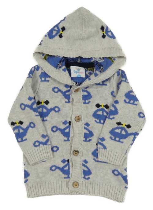 Svetlosivý melírovaný prepínaci sveter s vrtulníky a kapucňou Topomini