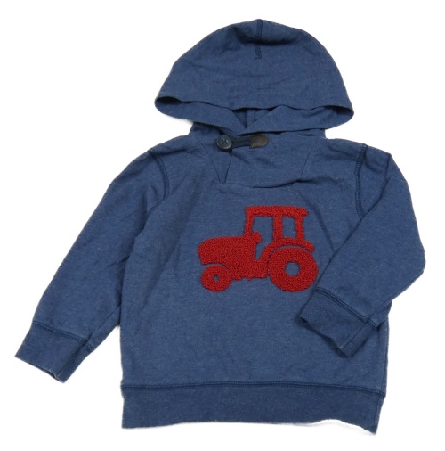 Tmavomodrá melírovaná mikina s traktorom a kapucňou Topomini