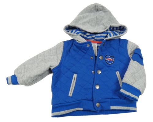 Kobaltově modro-sivá prepínaci baseballová zateplená mikina s kapucňou