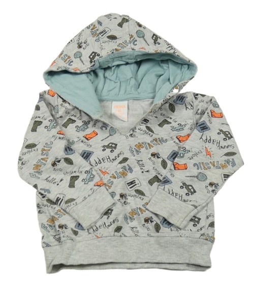 Svetlosivá mikina s nápismi a obrázkami a kapucňou Hema