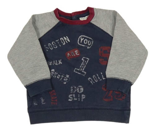 Tmavomodro-sivá mikina s nápismi