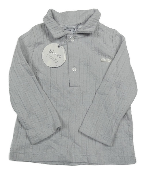 Nové - světlešedé žebrované vzorované mikinotriko s golierikom blues baby