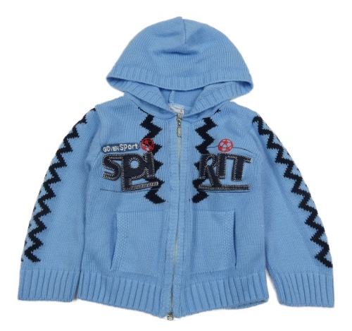 Modrý prepínaci sveter s nápisom a kapucňou Guven