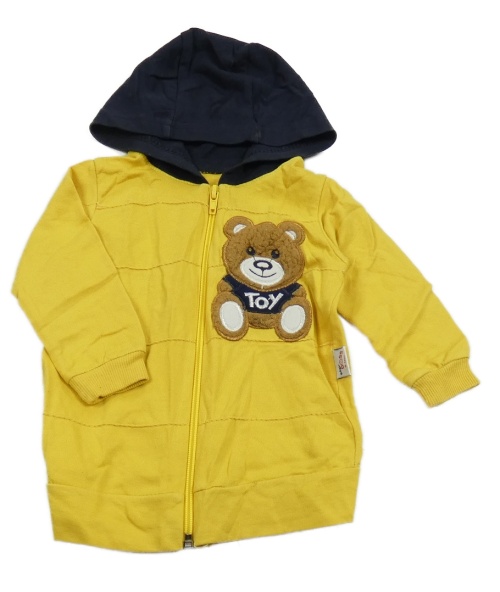 Žlto-tmavomodrá prepínaci mikina s medvedíkom a kapucňou