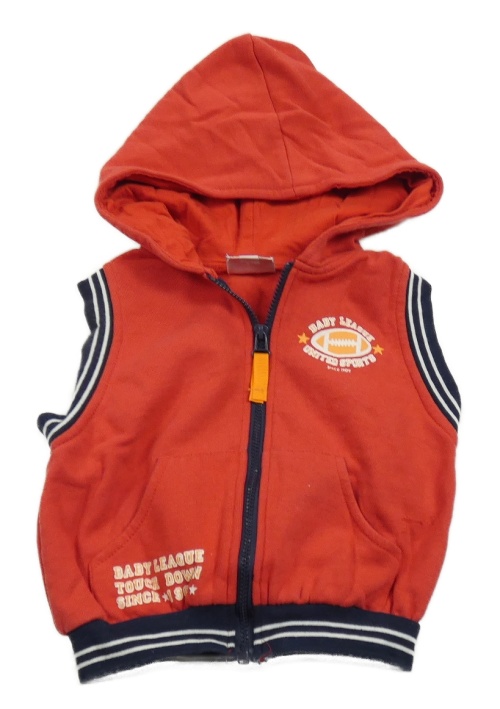 Červená tepláková prepínaci vesta s potlačou a kapucňou