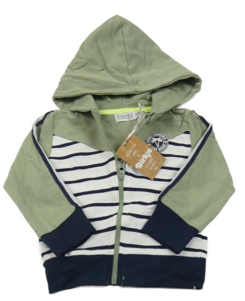 Nové - bílo-tmavomodro-khaki pruhovaná prepínaci mikina s nášivkou a kapucňou Dirkje