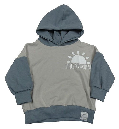 Sivo-modrošedá mikina so sluncem a kapucňou
