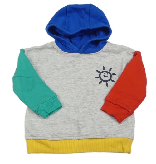 Sivá mikina so sluncem, farebnymi rukávy a kapucňou Dunnes stores